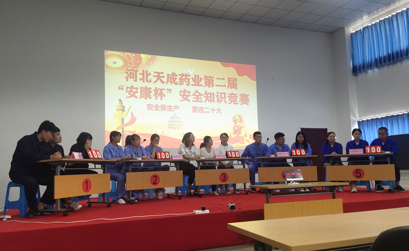 競賽在天成藥業總廠、天成藥業二分廠、三分廠、渤海分公司和道恩藥業5支代表隊中展開,采用個人必答題、共答題、搶答題、挑戰題環節進行,題目涉及安全生產方針、政策、法律法規、職業健康等有關領域知識,全面測試了參賽選手的綜合素質和臨場應變能力。由于比賽出現平分情況,經過加時賽最終得出最終名次:道恩藥業代表隊獲得第一名,渤海分公司代表隊獲得第二名,天成藥業總廠代表隊獲得第三名,天成藥業二分廠和天成藥業三分廠代表隊并列優秀獎。