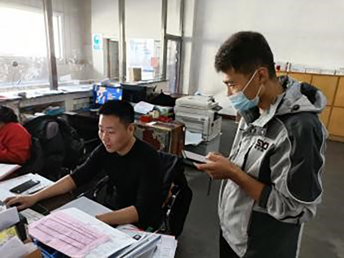 夜里11點半,儲運部的值守干部員工沒有休息,主任助理肖超還在用戶手機時時跟進物流運行情況,規劃可以通行的物流路線,發貨員劉旭,根據肖主任的指示快速查找銷售合同,重新排列發貨順序,田金茹部長根據發貨合同查找產品檢驗報告單依次復印,同時對接進廠區的運輸車輛,協調出庫保管員和搬運工快速裝車,多面手付安穩發完貨,坐在電腦前開具隨貨同行發票,儲運部所有值守人員,相互協作,爭分奪秒,盡量減少運輸車輛在公司停留時間。